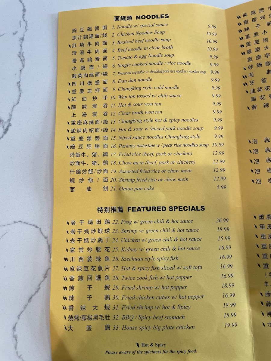 Vegetarians are also in for a treat, with dishes like Garlic Cucumber and Deep Fried Tofu in Spicy Sauce showcasing the vibrant diversity of Sichuan fare. The generous portions and competitive prices ensure a fulfilling experience for all diners. Service is unique, as customers order through a QR code, adding a modern twist to your meal. Whether you crave spicy fried shrimp or comforting soups with exquisite flavors, Spicy Chong Qing is an enticing destination for anyone seeking to explore authentic, spicy Sichuan cuisine.